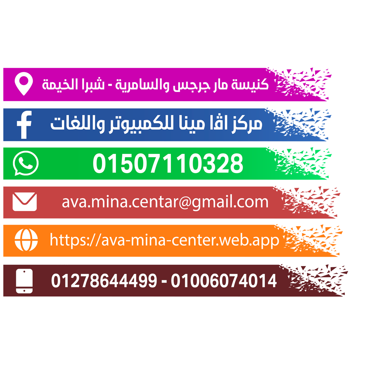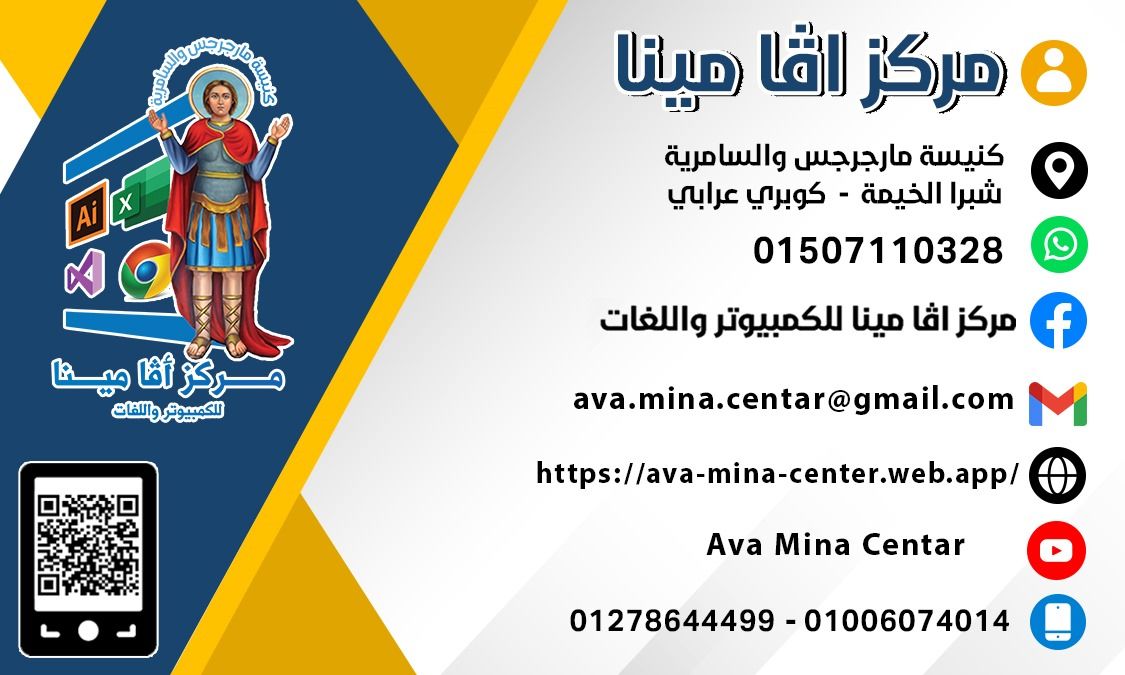 مركز أڤا مينا للكمبيوتر واللغات هو مركز تدريبي رائد يضعك على أول طريق المستقبل بخطوات واثقة ومدروسة. نقدم تعليمًا عمليًا من خلال تعليم عملي، أدوات حديثة، ومدربين محترفين. نؤمن أن “كورسك النهاردة… شغلك بكرة” هو أكثر من مجرد شعار بل هو رسالة نبني بها جيل قادر على التطور والتميّز ومواكبة كل جديد في عالم الكمبيوتر والتكنولوجيا واللغات.